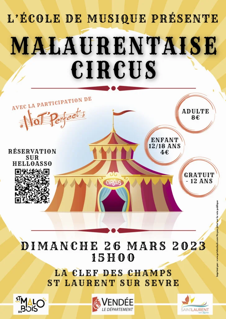 Cette édition intitulée “Malaurentaise Circus” se déroulera le dimanche 26 mars 2023 à 15h à la Clef des Champs à Saint Laurent-sur-Sèvre avec la participation de Not’Perfect et d’invités surprises. Vous pouvez dès aujourd’hui réserver vos places sur helloasso. Venez nombreux !