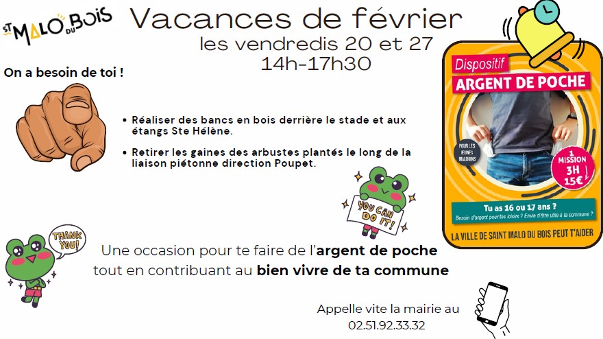 Dernier rappel – Dispositif argent de poche – Les vendredis 20 et 27 février 2026