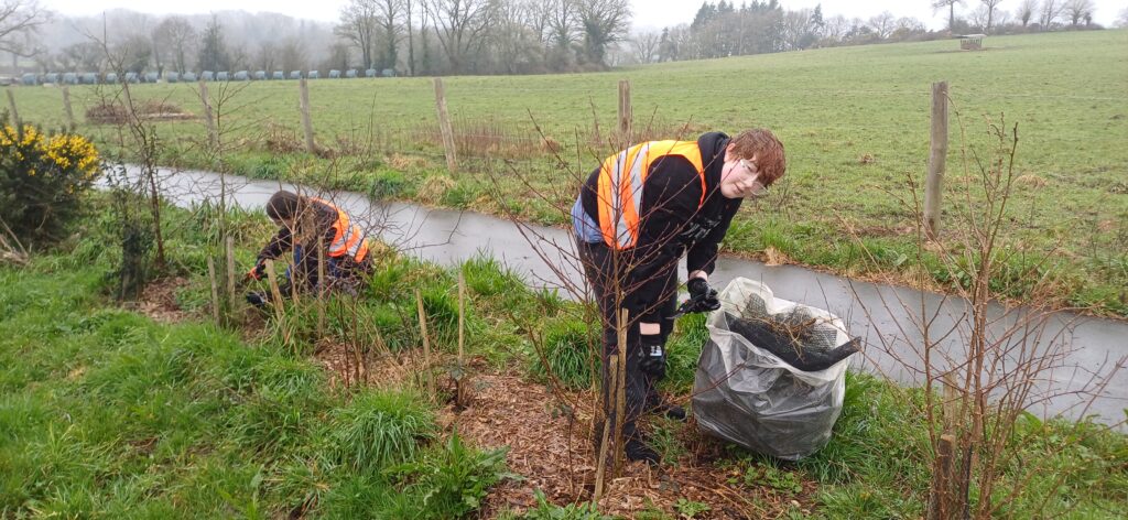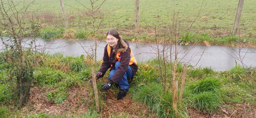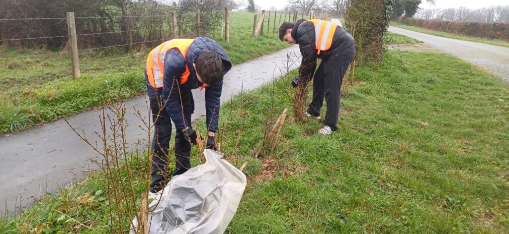 Couper, ciseler, retirer les filets autour des arbustes, des arbres plantés il y a 3 ans par le département.