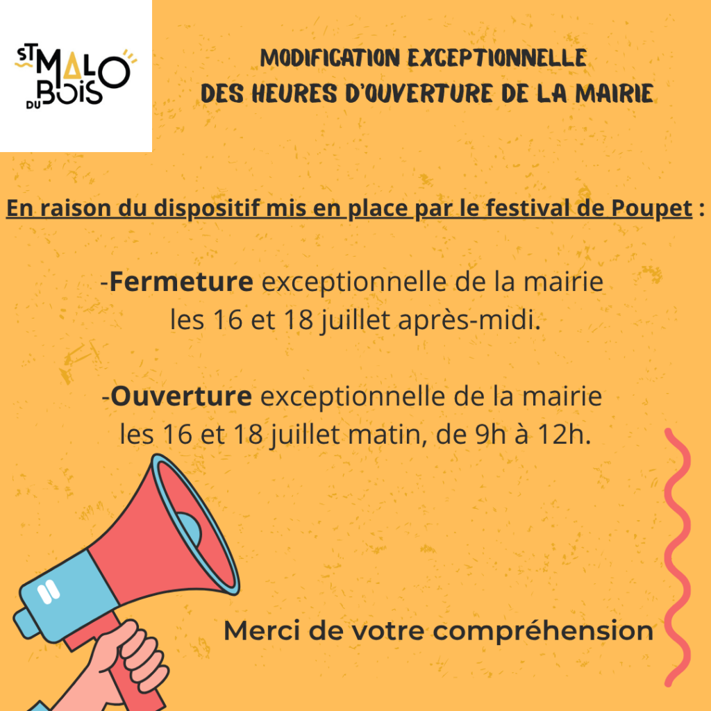 Modification exceptionnelle des heures d’ouverture de la mairie