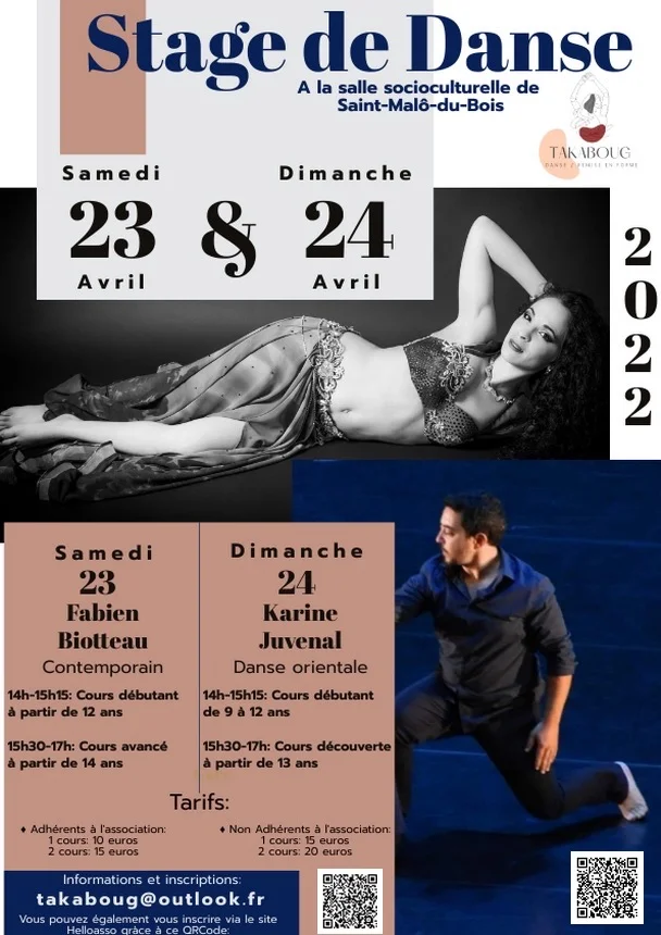 Venez participer au stage de danse à la salle socio-culturelle, le samedi 23 et dimanche 24 avril 2022