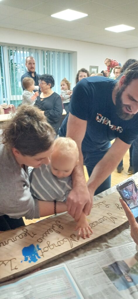 Puis, fidèle au rituel de cette plantation, les enfants ont pu laisser leur empreinte de main près de leur prénom gravé sur une planche issue d’un arbre de Poupet. 🤚