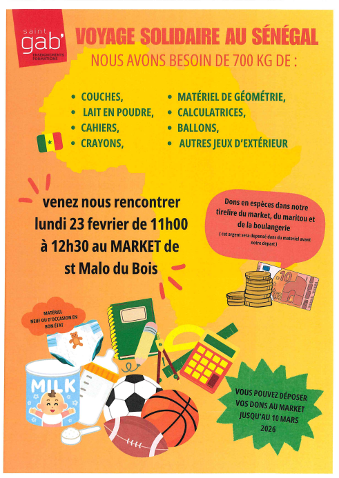 N’hésitez pas à déposer vos dons au Market de St Malo-du-Bois, vous avez jusqu’au 10 mars 2026.